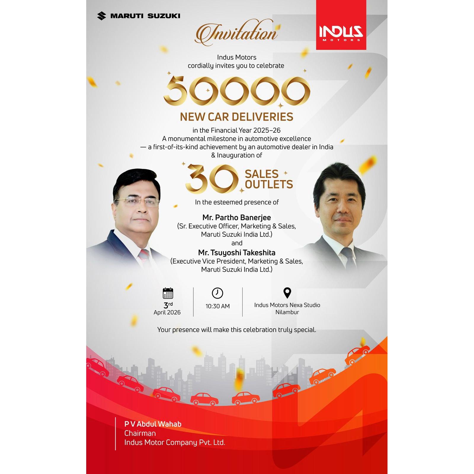 To mark this extraordinary achievement, Indus Motors is hosting a landmark celebration on 3rd April 2026 at 10:30 AM at the Indus Motors Nexa Studio in Nilambur.